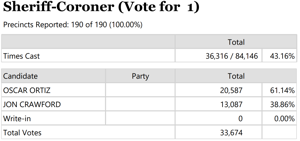 Ortiz takes early lead in sheriff race, Napa Valley Register, June 7, 2022